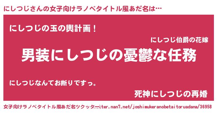 | 男性向けラノベタイトル風あだ名 | 『うちのにしつじが世界を掌握している!』 |