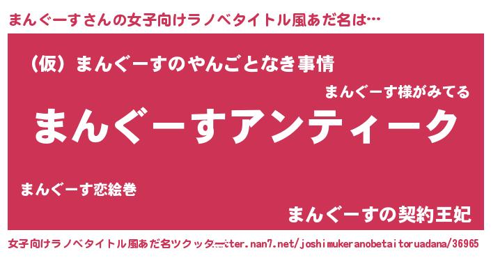 | 男性向けラノベタイトル風あだ名 | 『魔法科高校のまんぐーす』 |