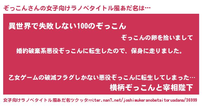 | 男性向けラノベタイトル風あだ名 | 『ゾッコンスレイヤー』 |