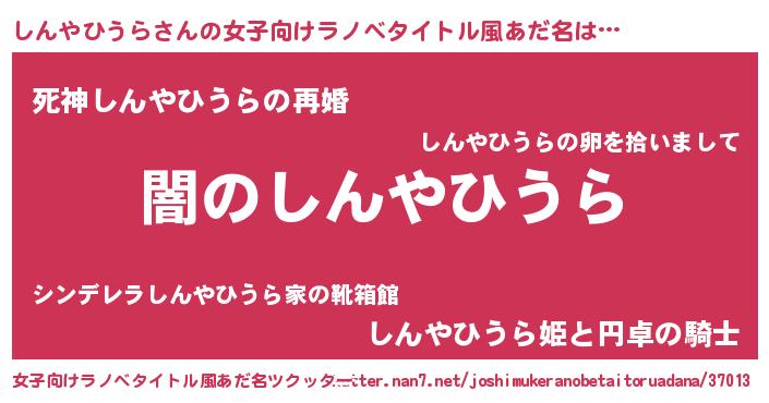| 男性向けラノベタイトル風あだ名 | 『Re:しんやひうらから始める異世界生活』 |
