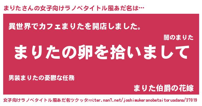 | ヘコむあだ名 | 『まりっぺ』『まりた(笑)』『豆乳』 |