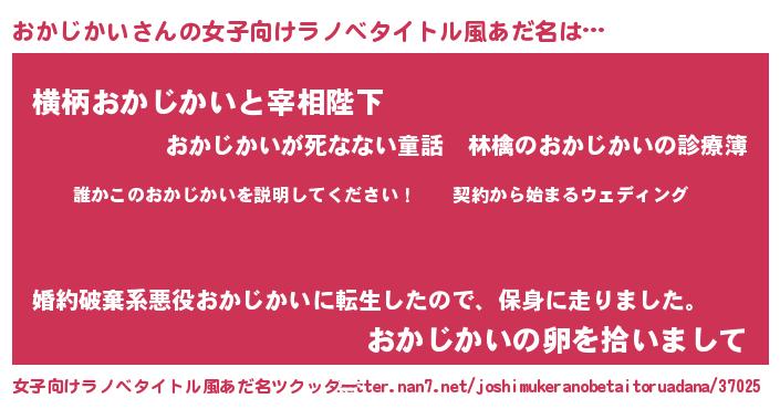 | 男性向けラノベタイトル風あだ名 | 『オカジカイアートオンライン』 |