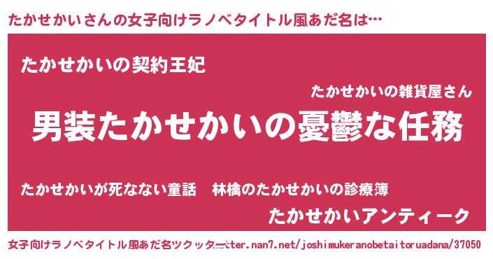 | ヒーロー風カッコイイあだ名 | 『ネオタカセカイ』『仮面タカダー』 |