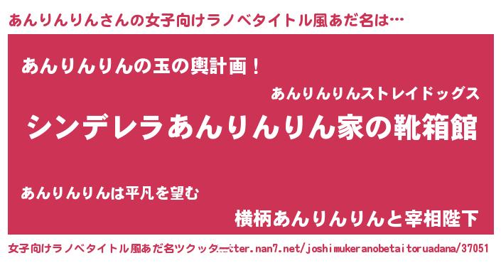 | 肩書あだ名 | 『あんりんりん艦長』『あんりんりん総統』 |