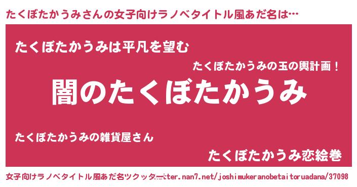| 男性向けラノベタイトル風あだ名 | 『Re:たくぼたかうみから始める異世界生活』 |
