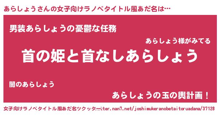 | 男性向けラノベタイトル風あだ名 | 『はたらくあらしょうさま!』 |