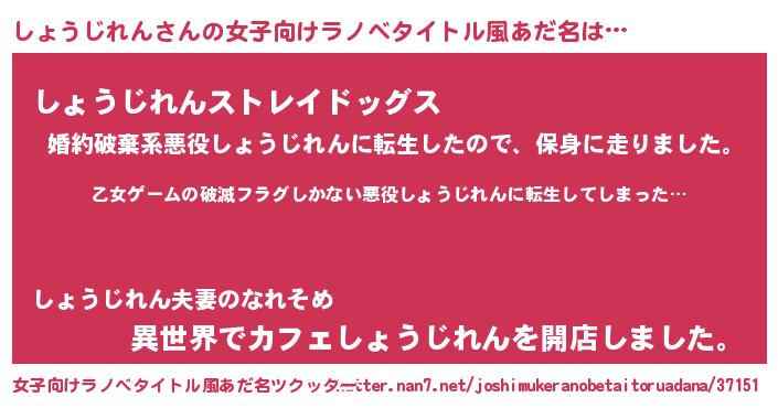 | 男性向けラノベタイトル風あだ名 | 『この素晴らしい世界にしょうじれんを!』 |