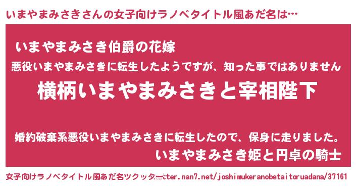 | 男性向けラノベタイトル風あだ名 | 『いまやまみさきに滅ぼされるだけの簡単なお仕事です』 |