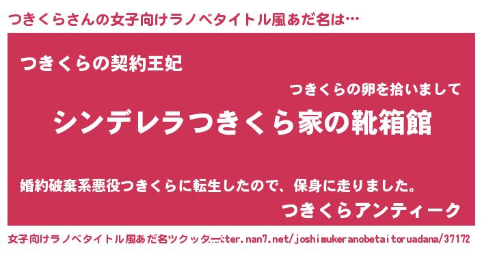 | 胡散臭い通販商品みたいなあだ名 | 『絶対に幸福をもたらす水素水…その名も「つきくら」』 |