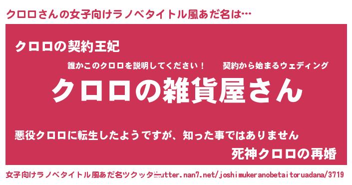 | 男性向けラノベタイトル風あだ名 | 『やはりクロロの青春ラブコメはまちがっている 』 |
