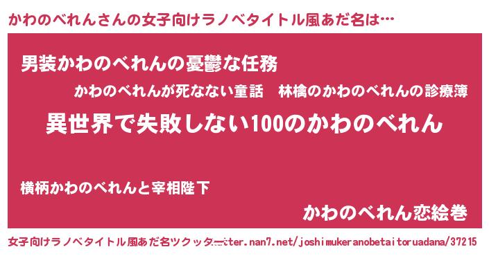 | 男性向けラノベタイトル風あだ名 | 『かわのべれんという概念が存在しない退屈な世界 』 |