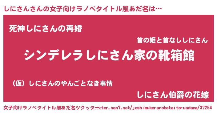 | 男性向けラノベタイトル風あだ名 | 『緋弾のシニサン』『しにさんの憂鬱』 |