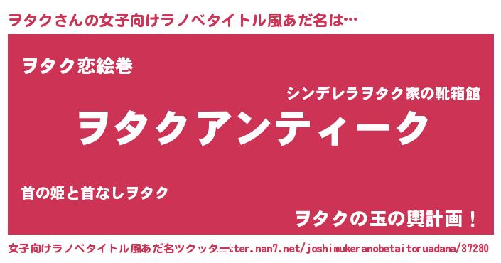 | 意味不明あだ名 | 『自称ヲタク』『眠気覚ましガムヲタク味』 |