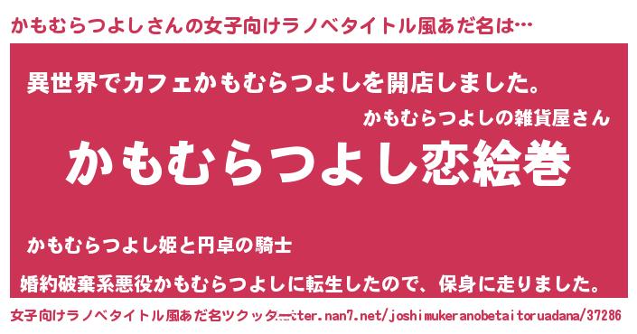 | ヘコむあだ名 | 『かもむらつよし(笑)』『酢こんぶ』 |