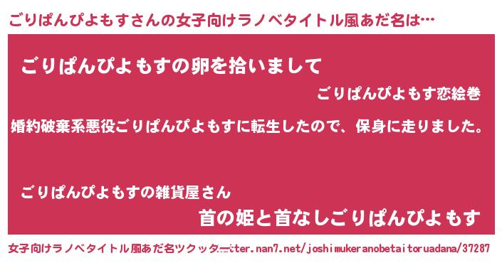 | 料理風あだ名 | 『ごりぱんぴよもすごはん』 |