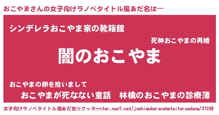 | 男性向けラノベタイトル風あだ名 | 『Re:おこやまから始める異世界生活』 |