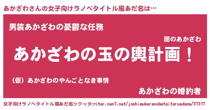| 男性向けラノベタイトル風あだ名 | 『転生したらあかざわだった件』 |