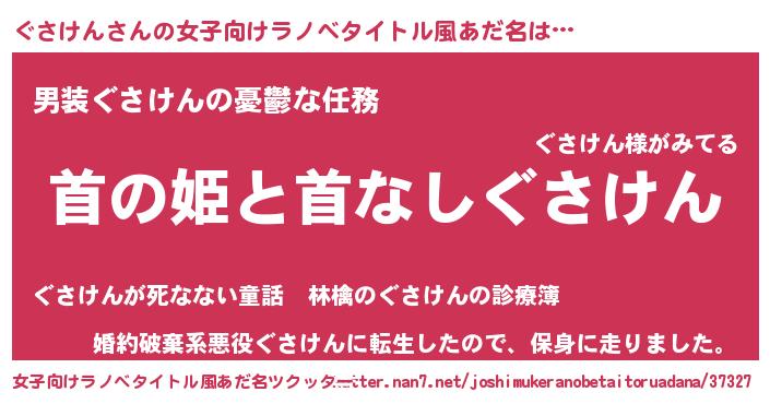 | 胡散臭い通販商品みたいなあだ名 | 『信頼と実績のネックレス…その名も「ぐさけん」』 |