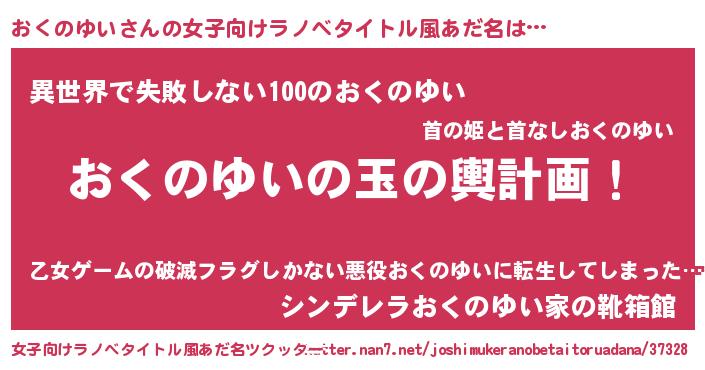 | 男性向けラノベタイトル風あだ名 | 『転生したらおくのゆいだった件』 |