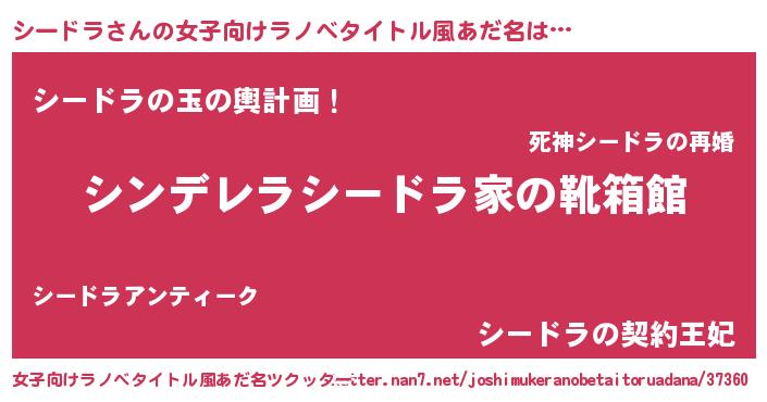 | 胡散臭い通販商品みたいなあだ名 | 『絶対に幸福をもたらす水素水…その名も「シードラ」』 |