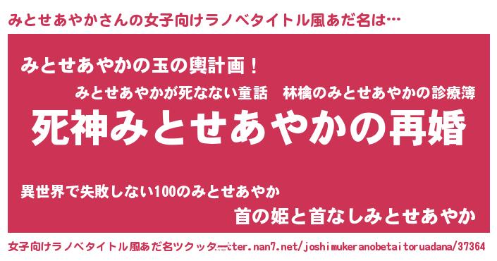 | 伝説のあだ名 | 『救世主となる占い師みとせあやか』 |