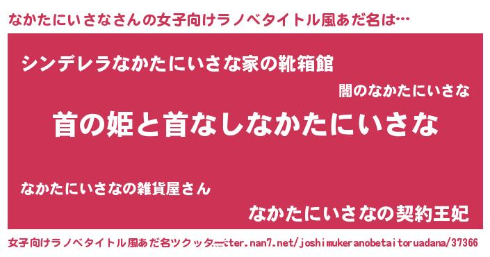 | 胡散臭い通販商品みたいなあだ名 | 『絶対に幸福をもたらす健康食品…その名も「なかたにいさな」』 |
