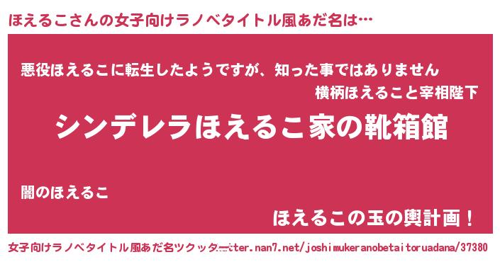 | ヘコむあだ名 | 『ほえるこ(苦笑)』『ほえぷりん』 |