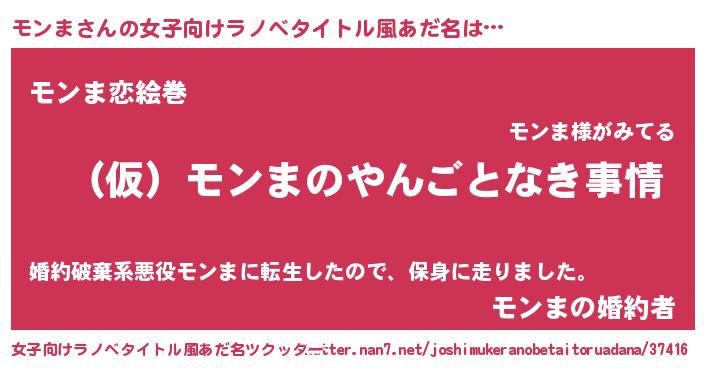 | 男性向けラノベタイトル風あだ名 | 『モンまの憂鬱』『モンマスレイヤー』 |