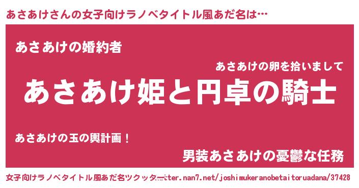 | 男性向けラノベタイトル風あだ名 | 『あさあけの憂鬱』 |