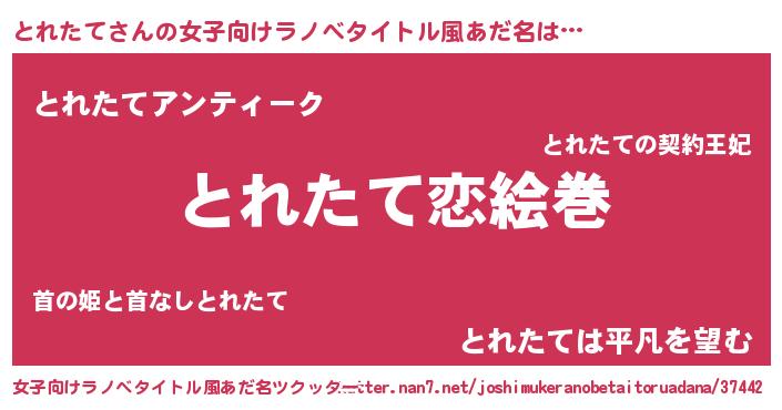 | 男性向けラノベタイトル風あだ名 | 『おまえをオタクにしてやるから、俺をとれたてにしてくれ! 』 |