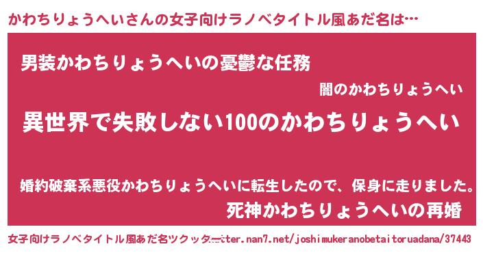 | 男性向けラノベタイトル風あだ名 | 『かわちりょうへいという概念が存在しない退屈な世界 』 |