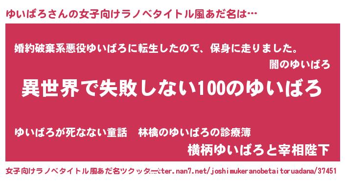 | 男性向けラノベタイトル風あだ名 | 『ゆいばろという概念が存在しない退屈な世界 』 |
