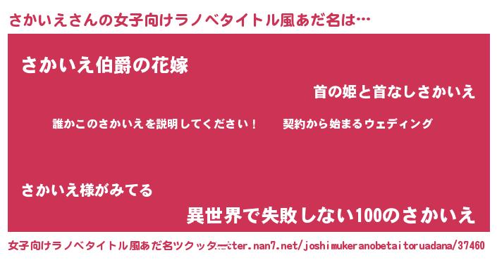| 男性向けラノベタイトル風あだ名 | 『サカイエアートオンライン』 |