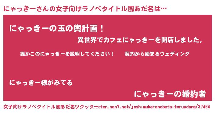 | 男性向けラノベタイトル風あだ名 | 『ニャッキーアートオンライン』 |