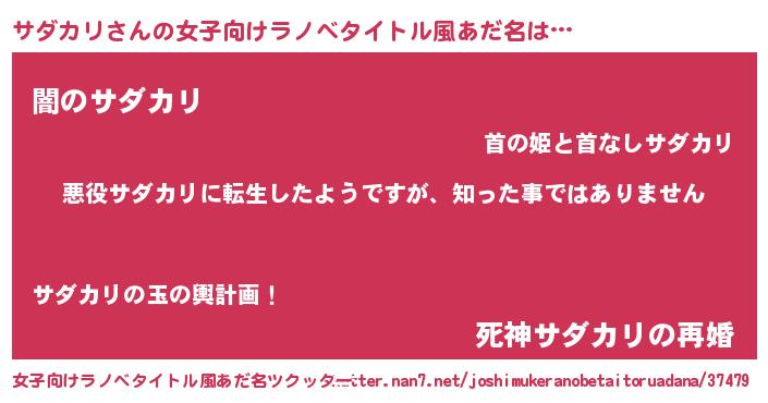 | 男性向けラノベタイトル風あだ名 | 『この素晴らしい世界にサダカリを!』 |