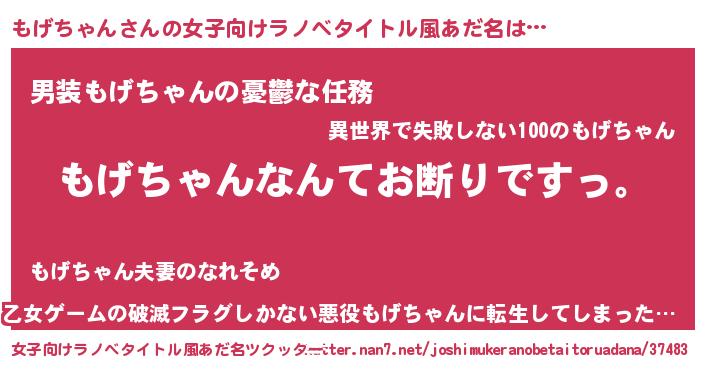 | 男性向けラノベタイトル風あだ名 | 『魔法科高校のもげちゃん』 |