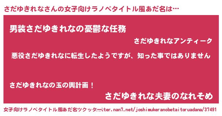 | 男性向けラノベタイトル風あだ名 | 『この素晴らしい世界にさだゆきれなを!』 |