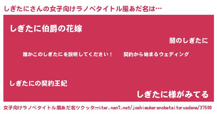 | ファンタジー風あだ名 | 『シギフェル』『エターナルシギタニー』 |