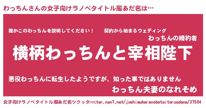 | 男性向けラノベタイトル風あだ名 | 『わっちんに滅ぼされるだけの簡単なお仕事です』 |