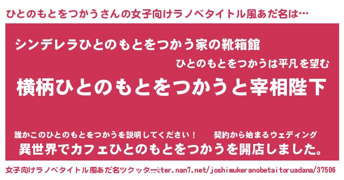 | 男性向けラノベタイトル風あだ名 | 『ひとのもとをつかうに滅ぼされるだけの簡単なお仕事です』 |