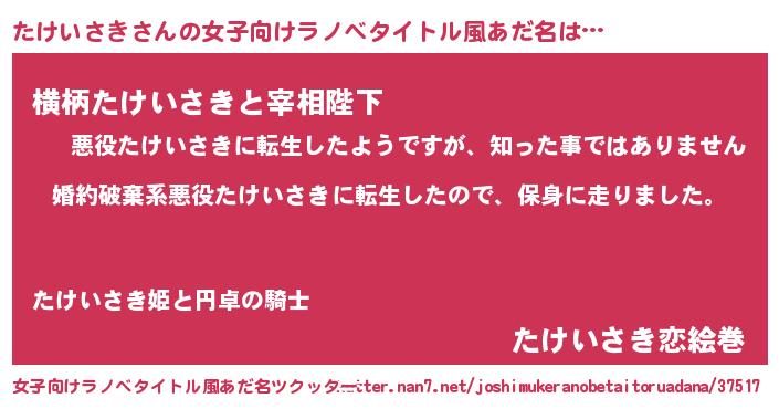 | ヒーロー風カッコイイあだ名 | 『友情の使者たけいさき』『仮面タケダー』 |