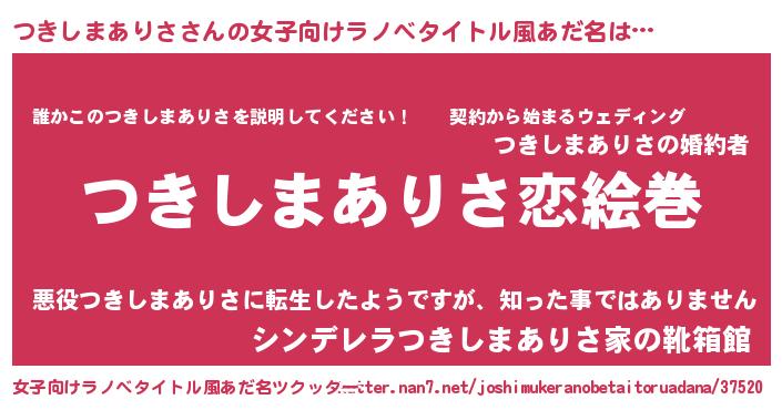 | 男性向けラノベタイトル風あだ名 | 『おまえをオタクにしてやるから、俺をつきしまありさにしてくれ! 』 |