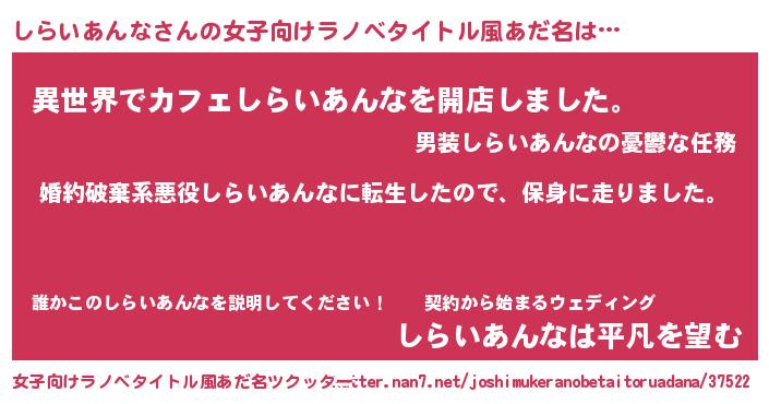 | 胡散臭い通販商品みたいなあだ名 | 『絶対に幸福をもたらす水素水…その名も「しらいあんな」』 |