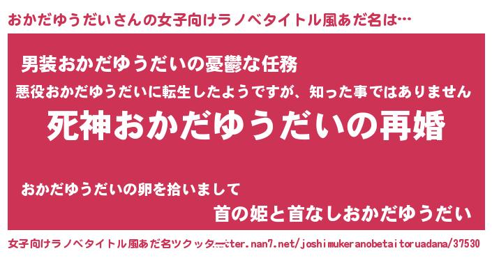 | 男性向けラノベタイトル風あだ名 | 『ノーゲーム・ノーオカダユウダイ』 |