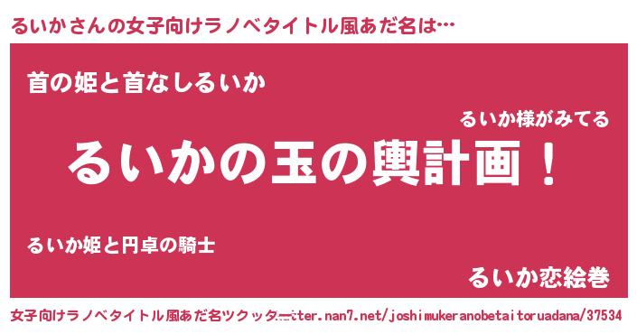 | 男性向けラノベタイトル風あだ名 | 『るいか~年齢イコール彼女いない歴の魔法使い~』 |