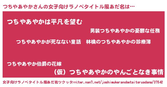 | 意味不明あだ名 | 『住所不定無職つちやあやか(7歳)』 |
