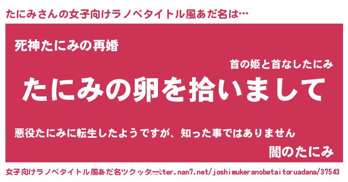 | 男性向けラノベタイトル風あだ名 | 『たにみの嫁は女の子じゃないと思った?』 |