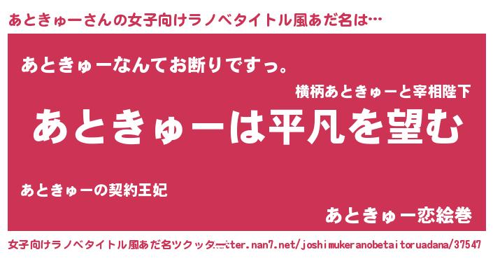 | 胡散臭い通販商品みたいなあだ名 | 『信頼と実績のサプリメント…その名も「あときゅー」』 |