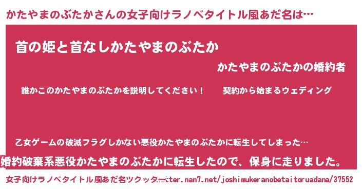 | 男性向けラノベタイトル風あだ名 | 『カタヤマノブタカアートオンライン』 |