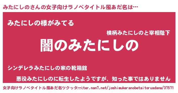 | 男性向けラノベタイトル風あだ名 | 『Re:みたにしのから始める異世界生活』 |